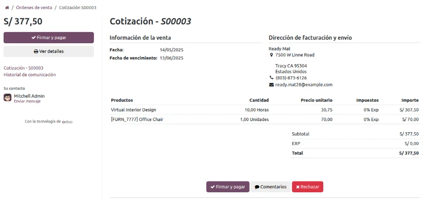 El potente generador de cotizaciones de Odoo es su aliado ideal para crear propuestas claras, profesionales e interactivas que impulsan la conversión y confianza del cliente.