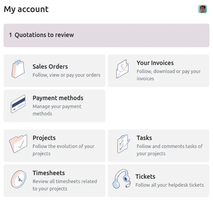 Dale a tus clientes acceso inmediato a su información desde el portal de Odoo: cotizaciones, pedidos, entregas y mucho más, todo en un solo lugar.